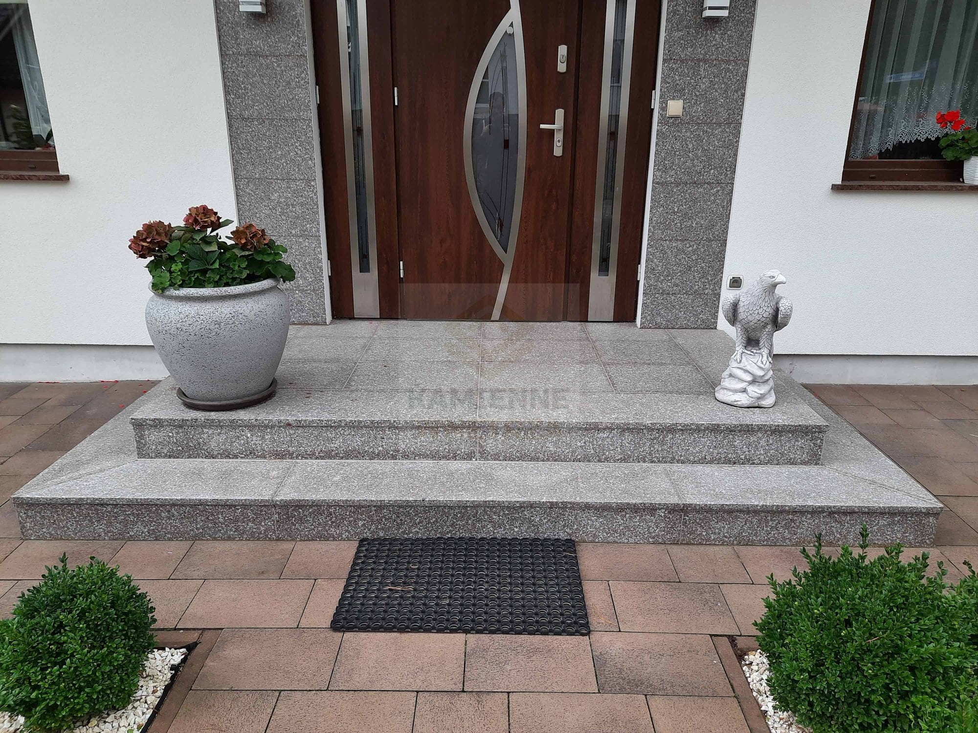 O grantowe schody G664 Królewski Brąz należy dbać tak jak o każdy inny kamień naturalny. Nie zapominajmy zatem o odpowiedniej impregnacji. Zwłaszcza gdy jest on narażony na działanie warunków atmosferycznych, lub jak ma to miejsce na podjeździe na olej samochodowy.